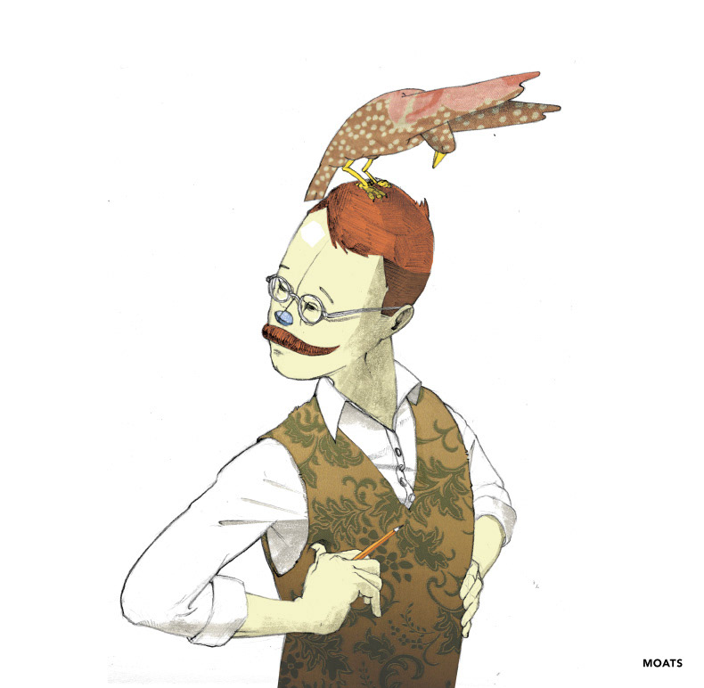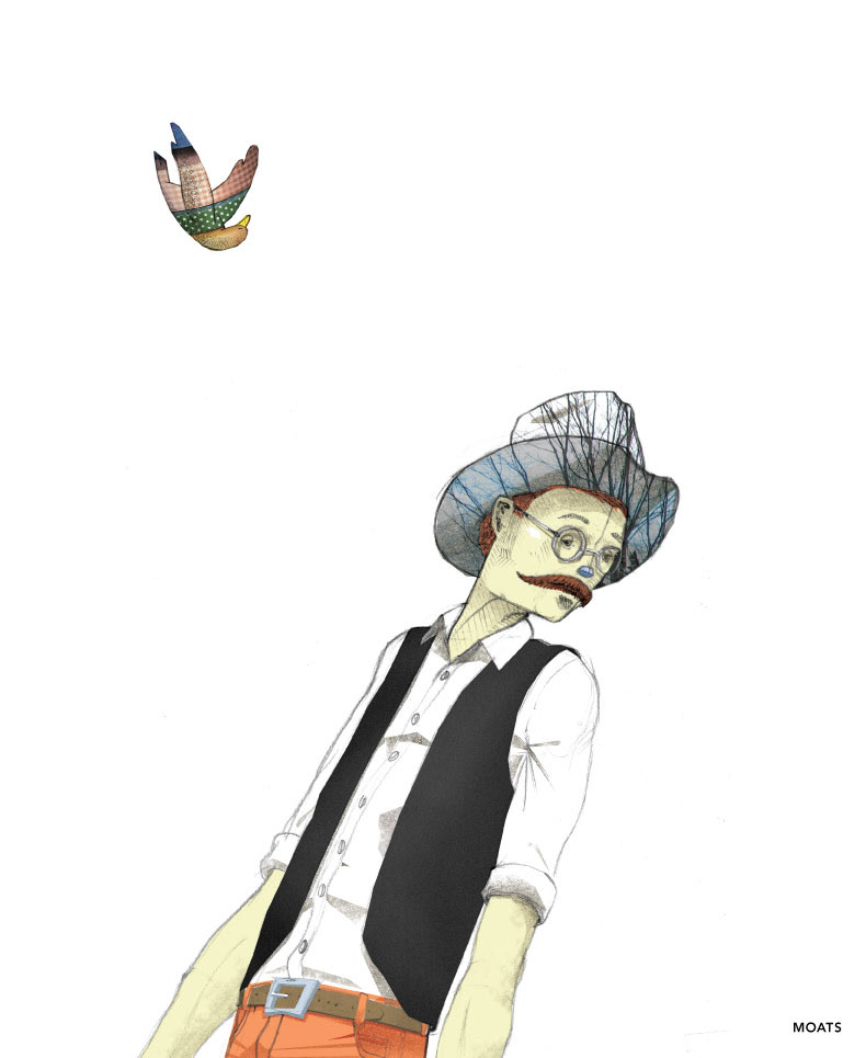 It was supposed to be a one-off, three piece project for an Asthmatic Kitty Records exhibit in Louisville, KY called Unusual Animals in 2008. But Spotted Crow and/or his bespectacled friend has popped up numerous times since then.